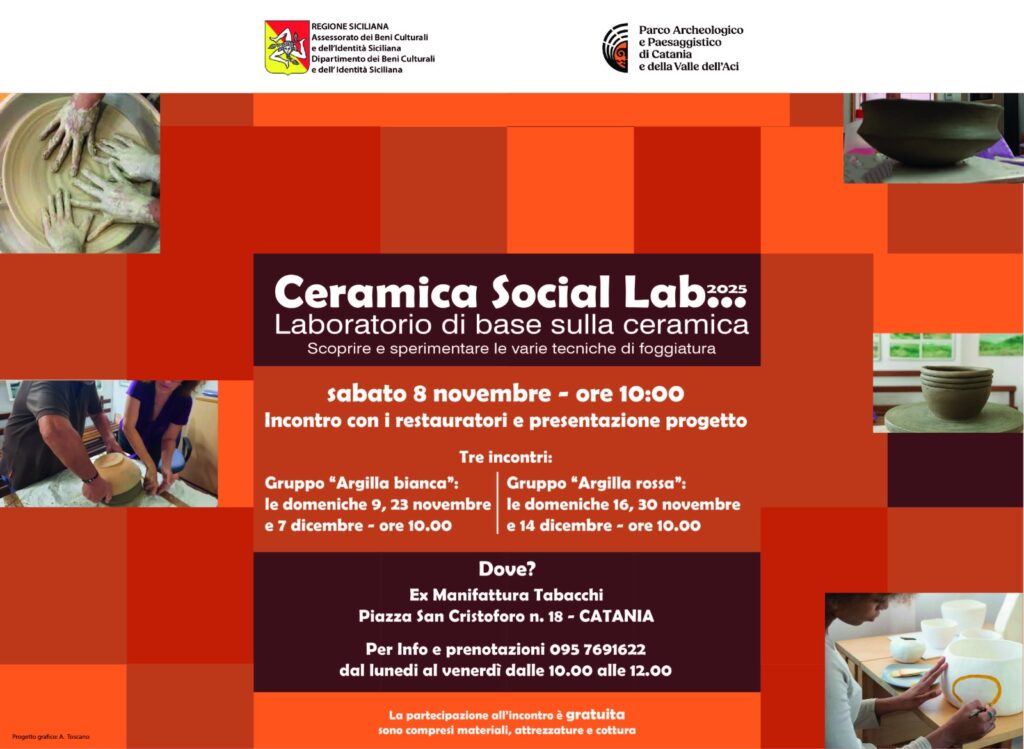 Si intitola “Ceramica Social Lab” ed è il progetto del Parco archeologico e paesaggistico di Catania e della Valle dell’Aci, diretto da Giuseppe D’Urso, dedicato all’arte della lavorazione della ceramica e pensato per far conoscere a chi è appassionato di attività artigianali uno dei materiali più antichi, diffuso già in epoca preistorica e comune alle culture di tutto il mondo.