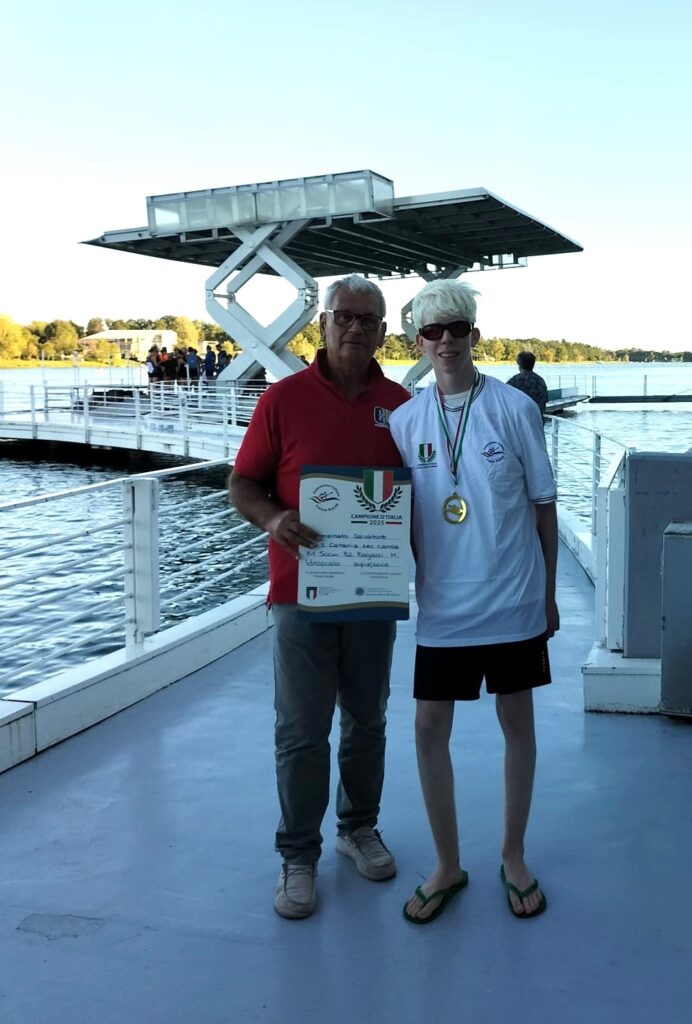 Una potenza di ragazzo di soli 16 anni, Salvatore Spampinato, per gli amici “Turi”, Catanese D.O.C. che nel week and scorso ha vinto tre gare nel Campionati Italiano di Velocità/Paracanoa che si è disputato all’Idroscalo di Milano. Le tre gare in cui si è classificato primo si sono svolte una di sabato e due di domenica, quindi una bella tripletta vincendo tutte le gare di categoria a cui ha partecipato. Nello specifico ha dominato le gare K1 500m B2 Ragazzi M, K1 200m B2 Ragazzi M, e K1 200m B2 Junior. E a rendere ancora più dolce la vittoria il fatto di essere stato premiato da un grande canoista, lustro dello sport italiano come Antonio Rossi, che si è congratulato per l’impresa, al di fuori del comune, per un atleta che si allena con costanza dal novembre del 2023.