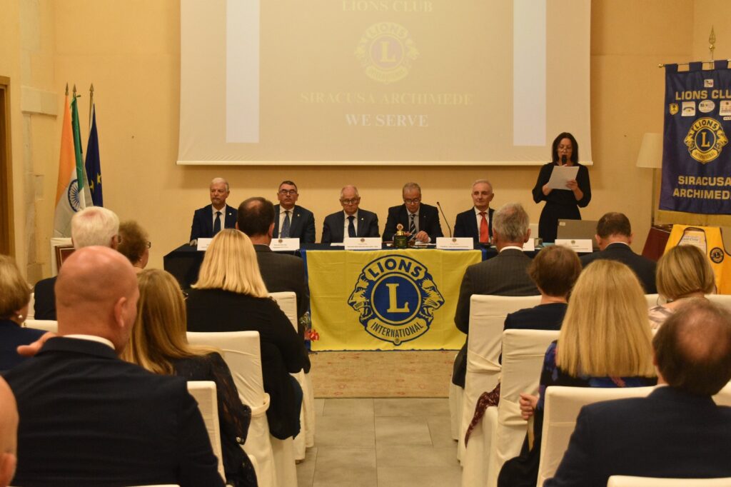 Dopo l’apertura ufficiale con il colpo di campana del Presidente Tony Gulino, il pubblico ha reso omaggio agli inni dell’India, in onore del Presidente Internazionale Arvinder Pal Singh, dell’Europa e d’Italia e la cerimoniera ha dato lettura degli Scopi del Lions Clubs International, richiamando i valori fondanti del lionismo: amicizia, solidarietà, impegno civile e servizio alla comunità. Sono quindi seguiti i messaggi di saluto del Governatore del Distretto 108YB Sicilia, Diego Taviano, e dell’Immediato Past Governatore Mario Palmisciano.
