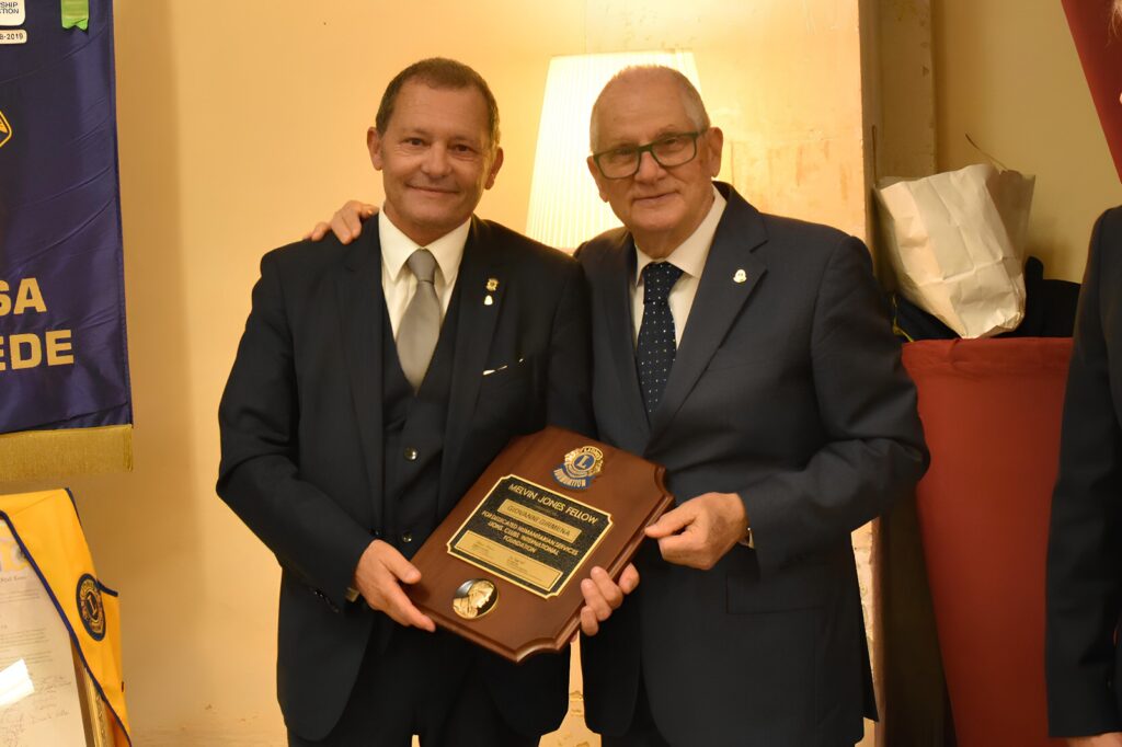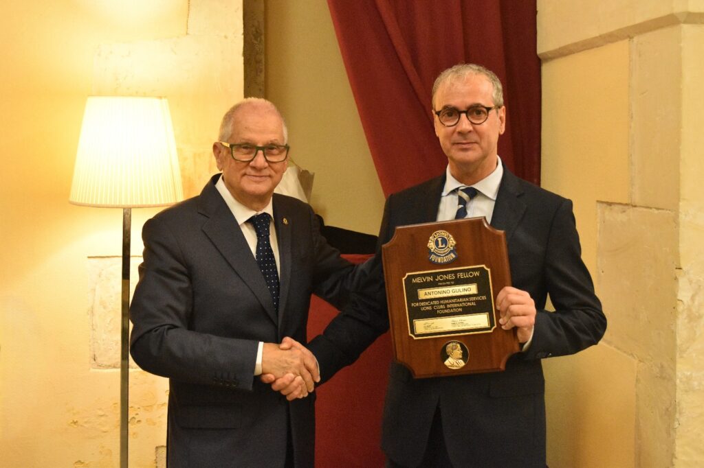 A ricevere l’onorificenza sono stati Giovanni Girmena, past president, e Tony Gulino, attuale presidente del Club, entrambi soci fondatori, per il loro instancabile impegno e la costante dedizione ai principi lionistici e, soprattutto, per l’incessante attività umanitaria.