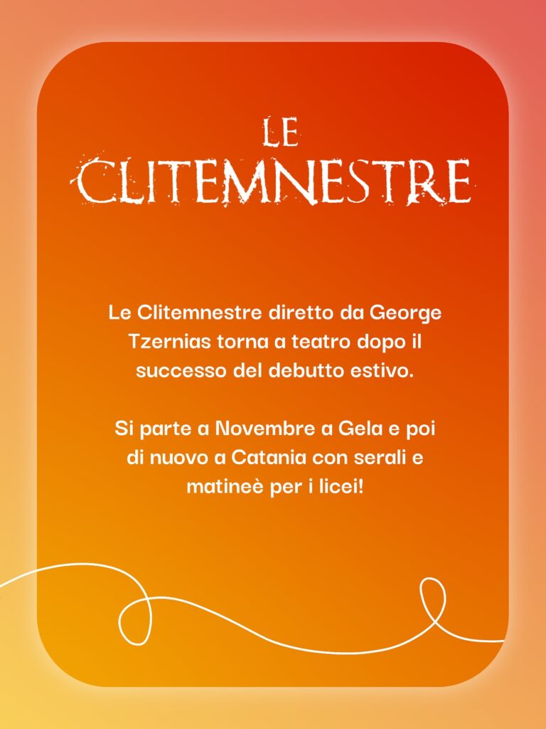 Le Clitemnestre, diretto da George Tzernias, tornerà in scena dopo il successo del debutto estivo. La nuova tournée partirà a novembre da Gela per poi approdare a Catania, con repliche serali e matinée dedicate alle scuole superiori.