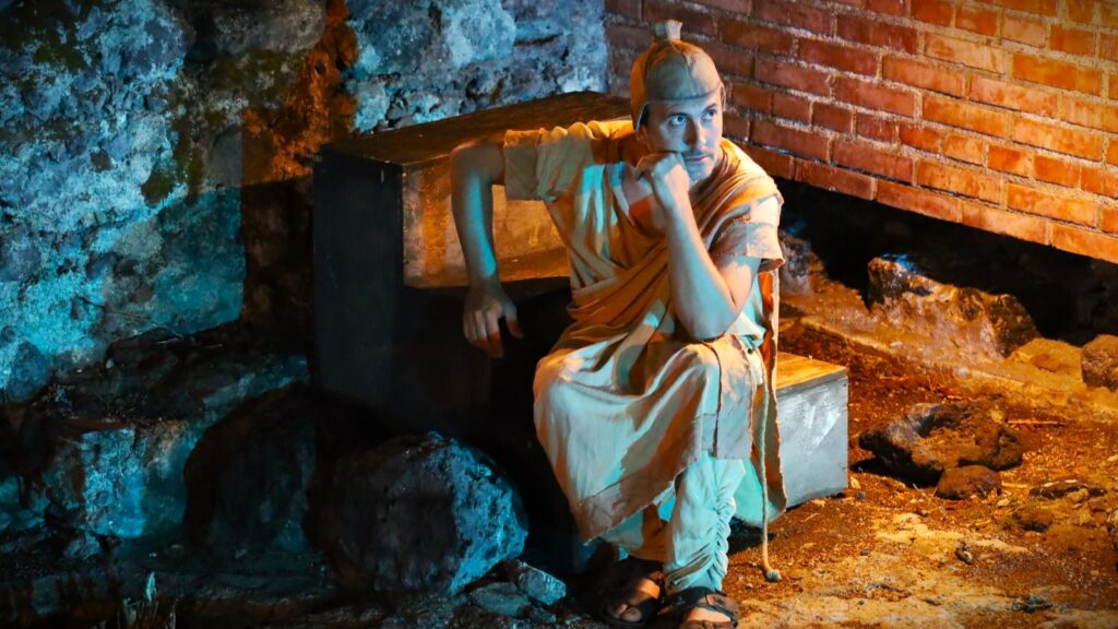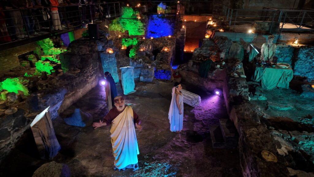 Non a caso il titolo di quest’ultimo episodio del ciclo dell’Eneide era False onnipotenze e umanità perdute – i precedenti si intitolavano I profughi troiani tra Venere e Giunone, Didone e l’amore tradito, e il terzo, andato in scena sabato 27, Gli dèi potenti, le Furie e la guerra – e ha entusiasmato il numeroso pubblico delle affascinanti Terme della Rotonda.