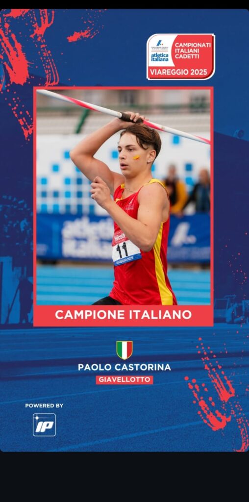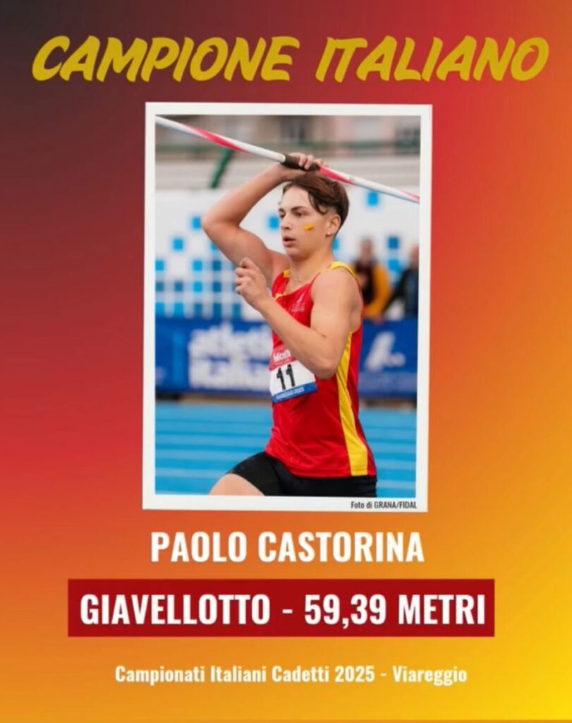 Paolo Castorina, studente della seconda “M” del liceo “Leonardo” di Giarre, è campione italiano nella categoria “Cadetti”, nel lancio del giavellotto, titolo conquistato ai Campionati italiani Cadetti 2025, a Viareggio. Paolo ha dominato la scena nel lancio del giavellotto, scagliando l’attrezzo a 59,39 metri e conquistando un oro che vale doppio: oltre al titolo, rappresenta il suo nuovo personal best e il simbolo di una rinascita, dopo un infortunio che lo aveva tenuto fermo da maggio a settembre.