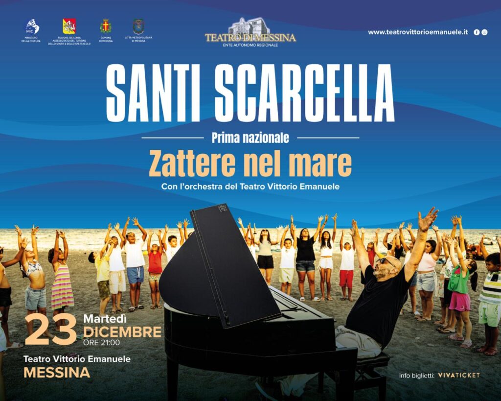 Un pianoforte recuperato in mare dai mezzi della Guardia Costiera Italiana, un disco e un professore che salva con la musica: così nasce Zattere nel Mare, il nuovo progetto scritto e composto da Santi Scarcella – pianista, cantautore e docente – che debutterà in prima nazionale il 23 dicembre 2025 al Teatro Vittorio Emanuele di Messina.